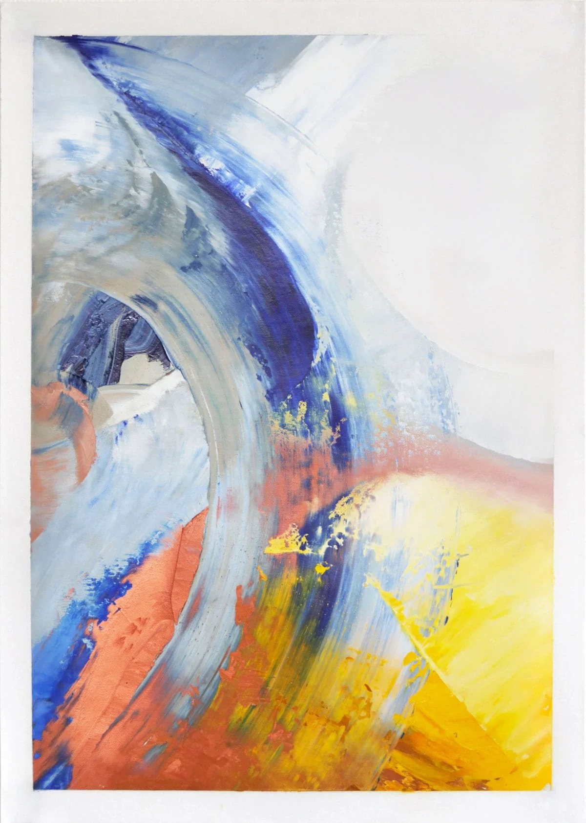 Raw emotions, raw mouvements, raw textures. Nothing more, nothing less. An expression, in the moment, inspired by whatever is perceived and felt, utilizing oil paint and a palette knife. The colors then merge with each other directly onto the blank canvas or media, creating layers and implicit shapes.